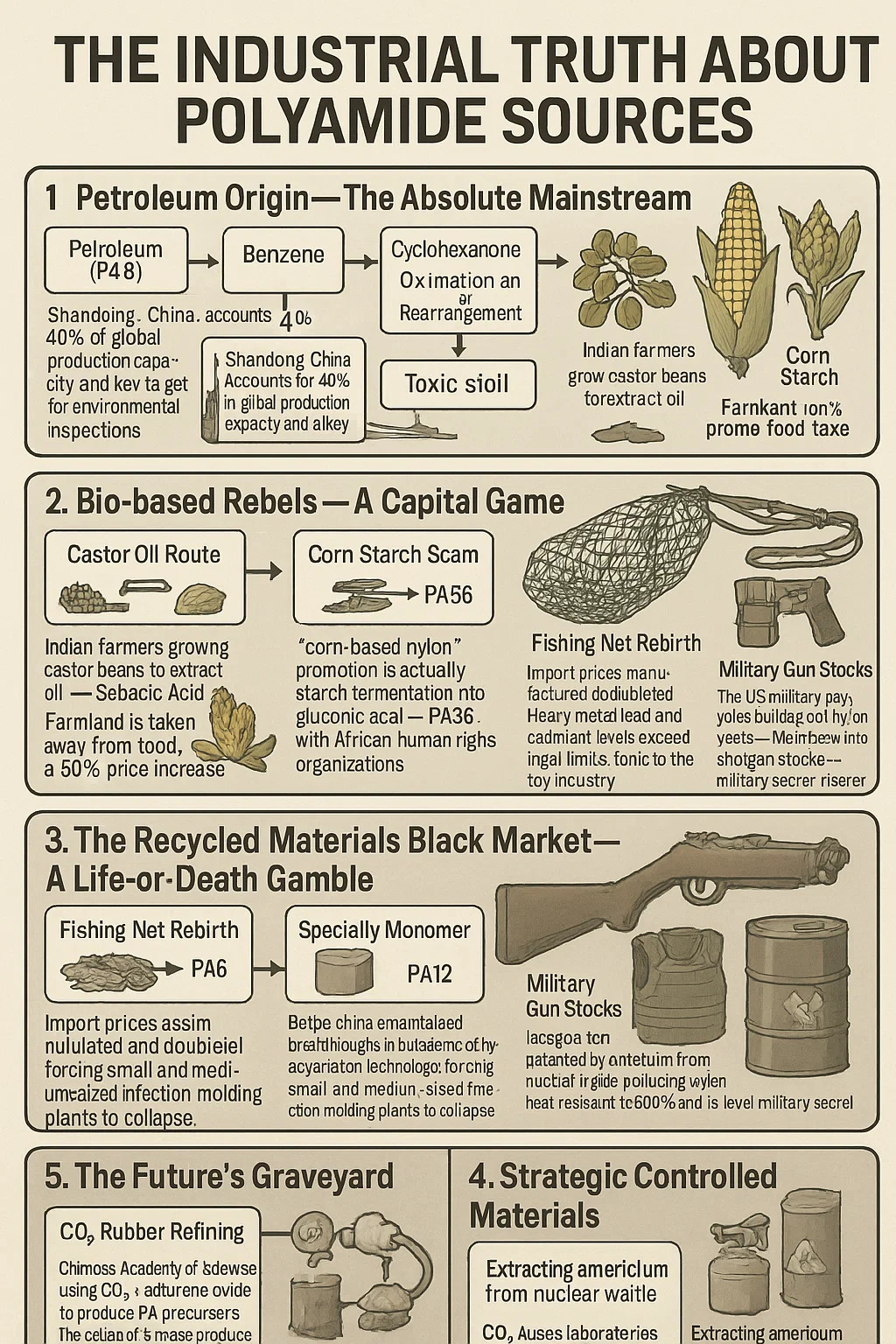 Corn Starch Scam: Den "majsbaserade nylon" -kampanjen är faktiskt stärkelsefermentering → Glukonsyra → PA56, med ett 1: 5-kornförbrukningsförhållande, som har bojkottats av afrikanska mänskliga rättighetsorganisationer.